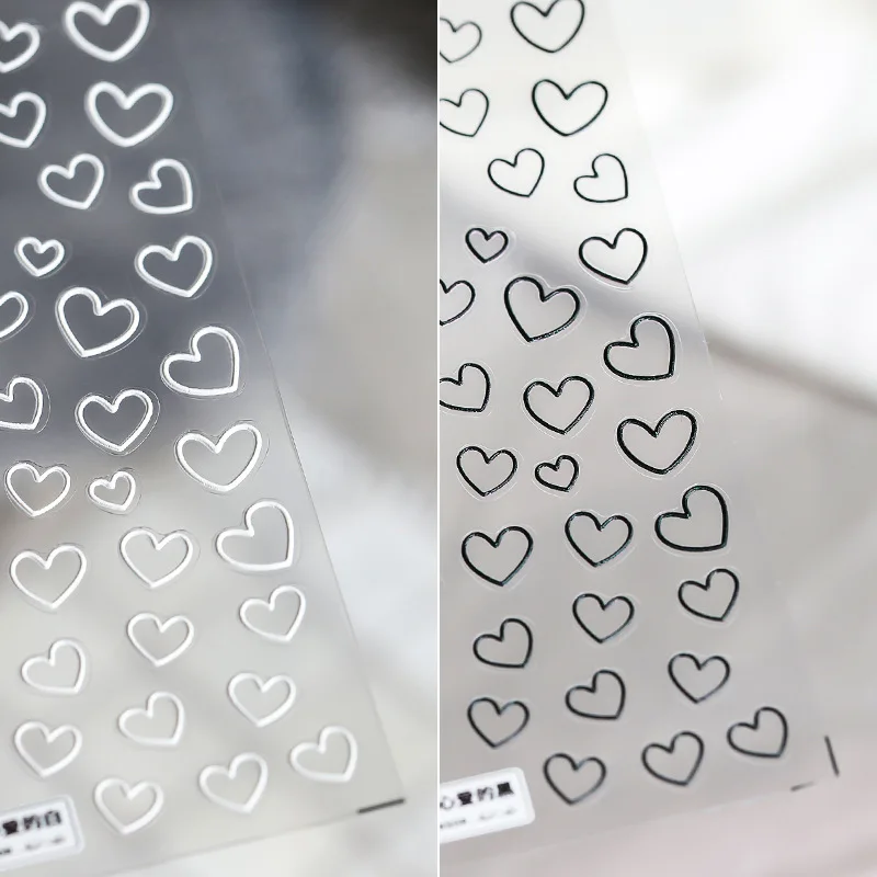 1 лист наклеек для ногтей в виде сердца, высокое качество, День Святого Валентина, черные, Белые Самоклеящиеся Переводные слайдеры, украшение для ногтей