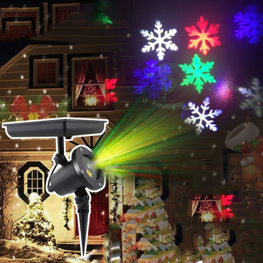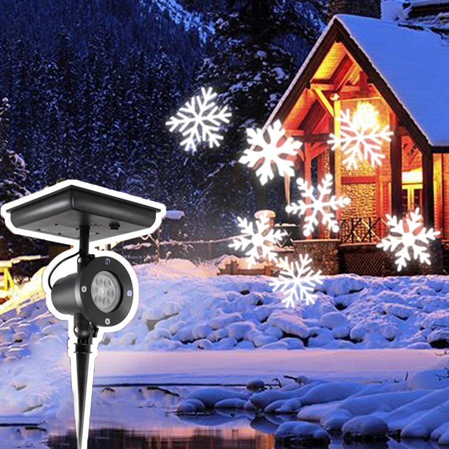 Уличные лампы-проекторы со снежинками на солнечной батарее, уличный лазерный проектор для снега, Точечный светильник для газона, пейзаж, снежинки, сценическое освещение для дискотеки