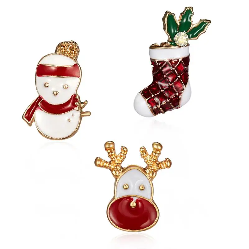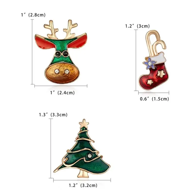 Хит продаж, 3 шт., рождественские броши, рождественские носки, Рождественская елка, лось, эмаль, значок, маленькая брошь, женская мода, вечерние ювелирные изделия, подарки