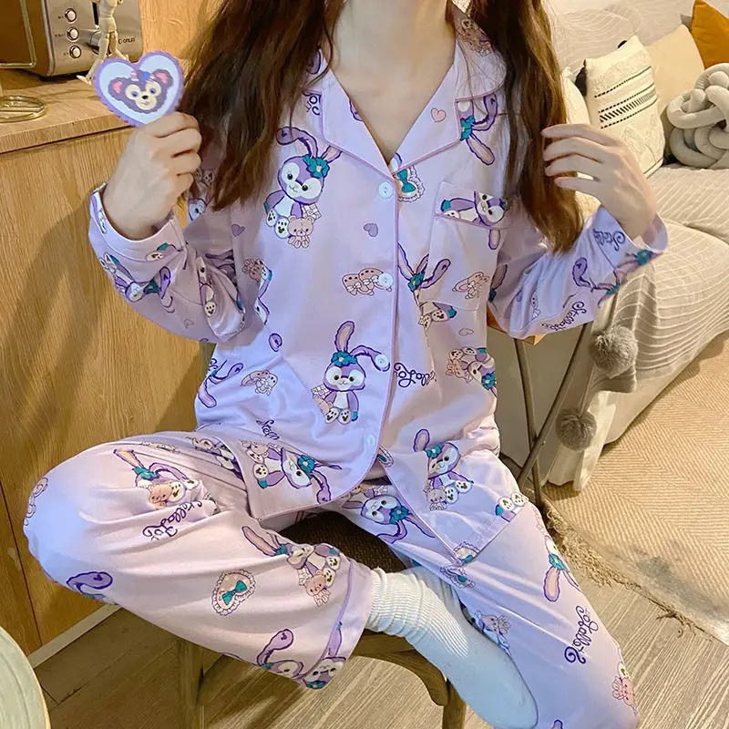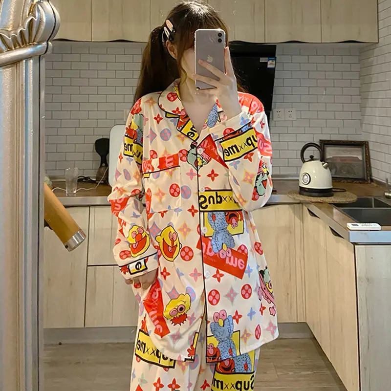 Осенне-зимний пижамный комплект с аниме мультяшным рисунком, одежда для сна с длинным рукавом для отдыха для женщин, свободная ночная рубашка для девочек, домашний костюм