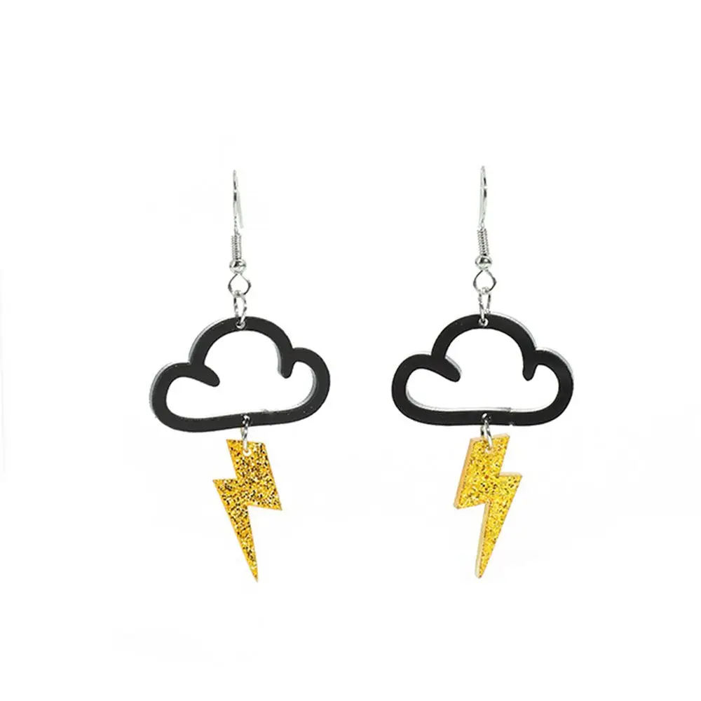 Забавные новые длинные Подвесные серьги-капли с молнией и облаком д...