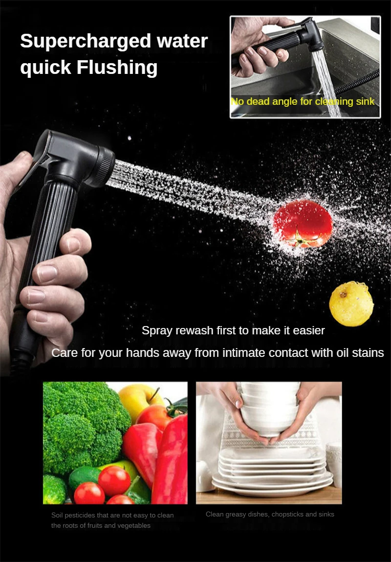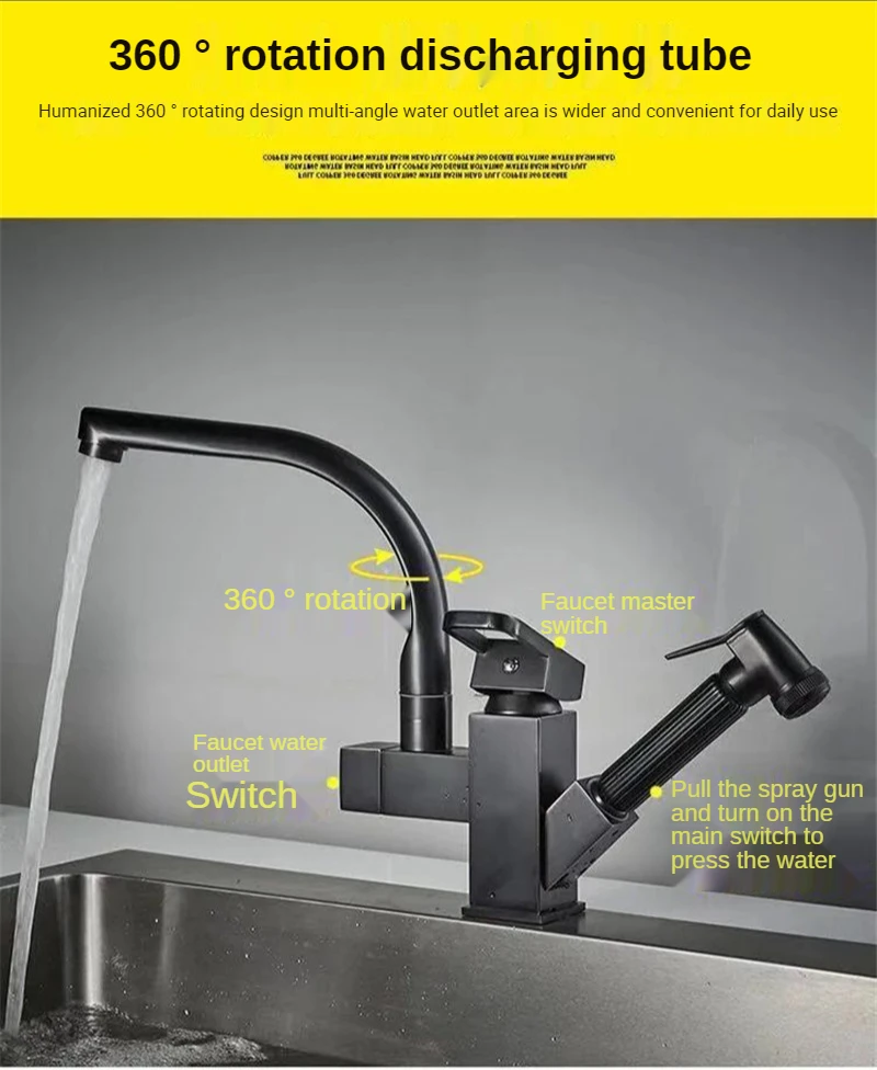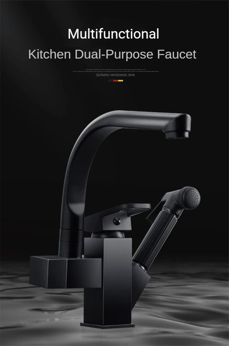 Черный кухонный смеситель, выдвижной кран двойного назначения с креплением на раковину, вращение на 360 градусов, бытовой смеситель для ванной комнаты