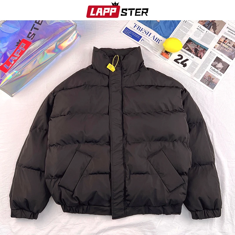 Мужская зимняя пузырьковая куртка LAPPSTER с большими карманами в стиле харадзюку, корейская мода 2022, черные парки большого размера, мужские толстые пуховики