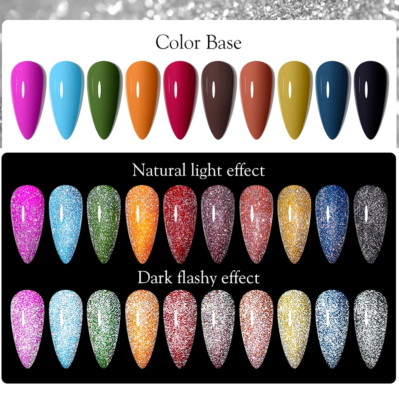 1 шт. 6 мл светоотражающий Блестящий верхний слой или 1 шт. светоотражающий Блестящий верхний слой + 1 шт. Цветной Гель-лак