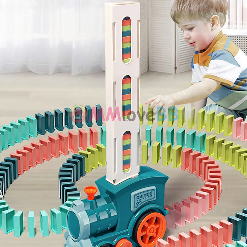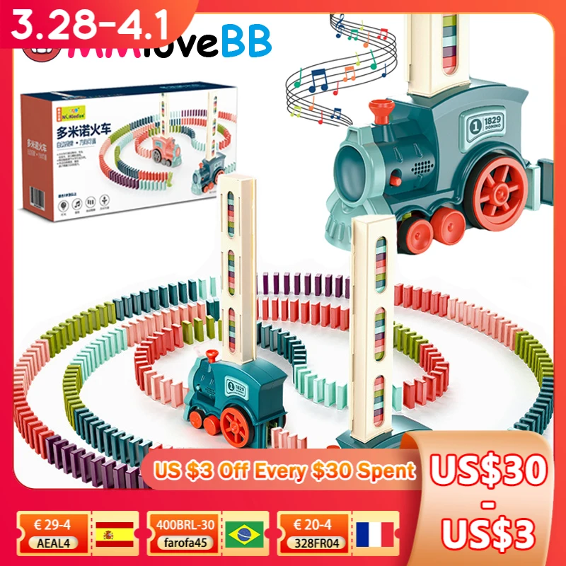Детский Электрический поезд-домино, Набор машинок со звуком и светом, автоматическая кладка домино, кирпичные блоки, игра, обучающая игрушка сделай сам, подарок