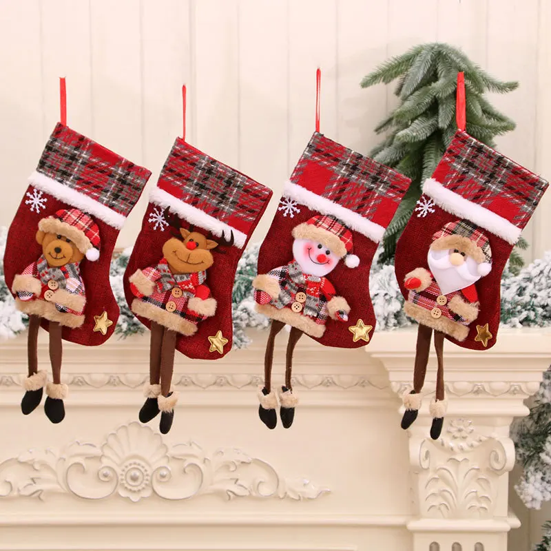 Льняные чулки, куклы, рождественские чулки с длинными ногами, рождественские украшения в рождественском стиле, подвески для рождественских чулок