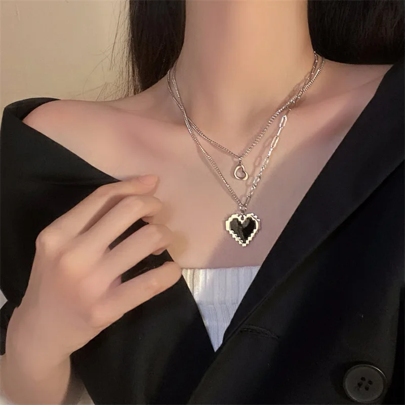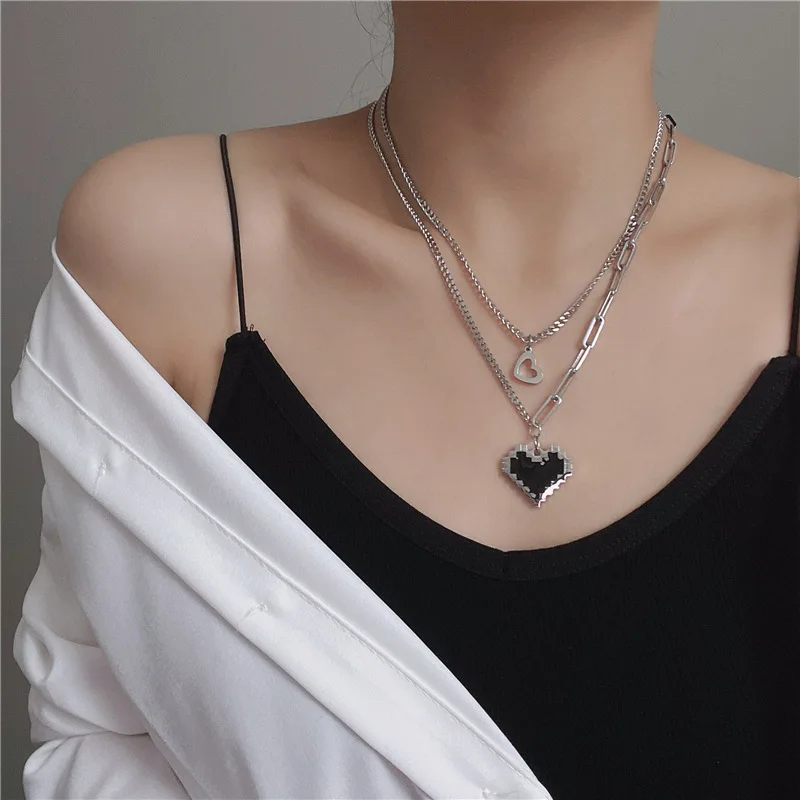 Черная мозаика любовь пиксель персик сердце Двухслойное ожерелье для женщин ювелирные изделия для вечеринки