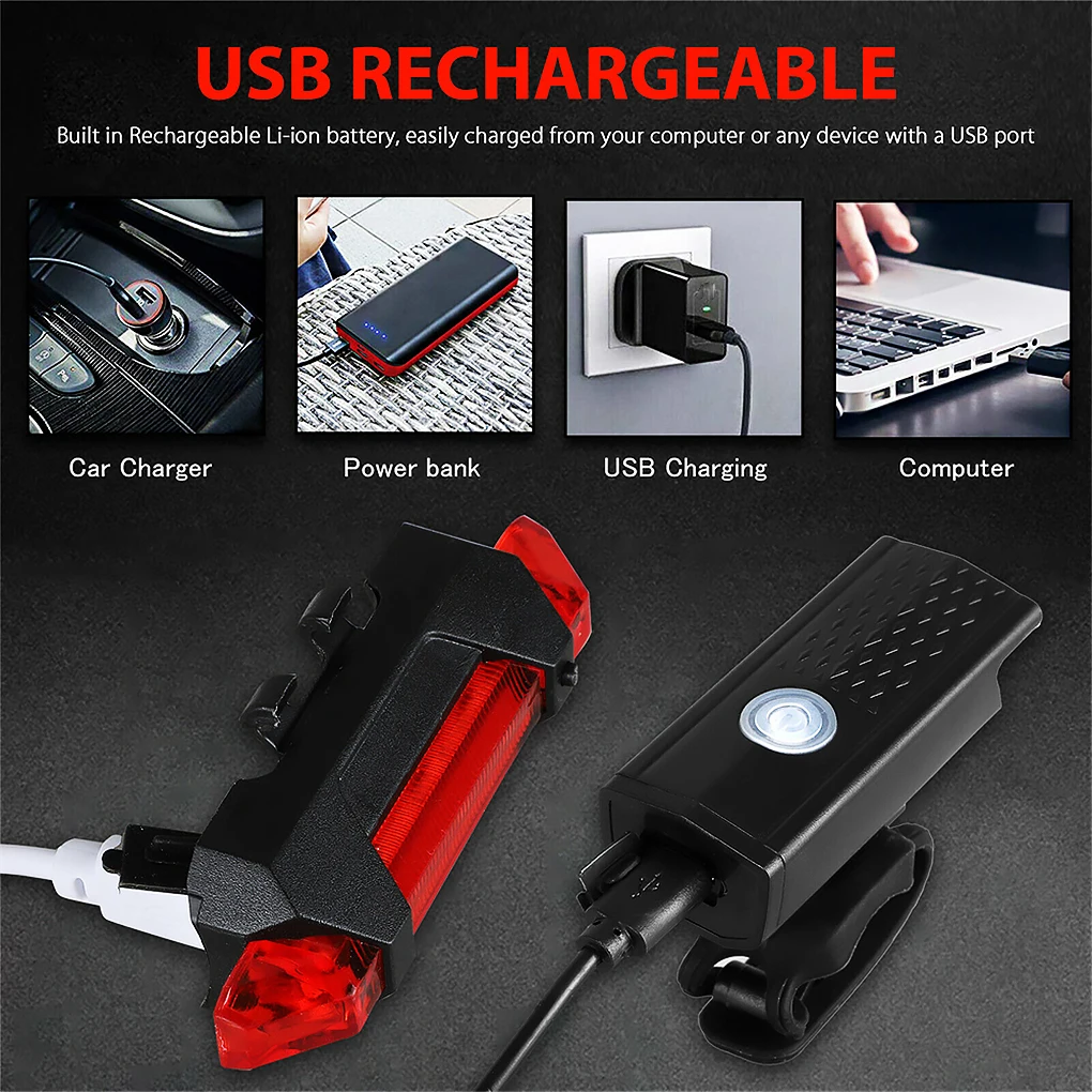 Водонепроницаемый велосипедный фонарь USB светодиодный перезаряжаем...