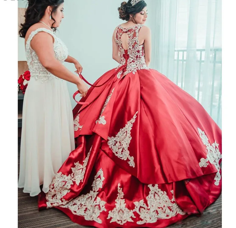 Красное Атласное Бальное Платье для девушек 15 лет 2022 года