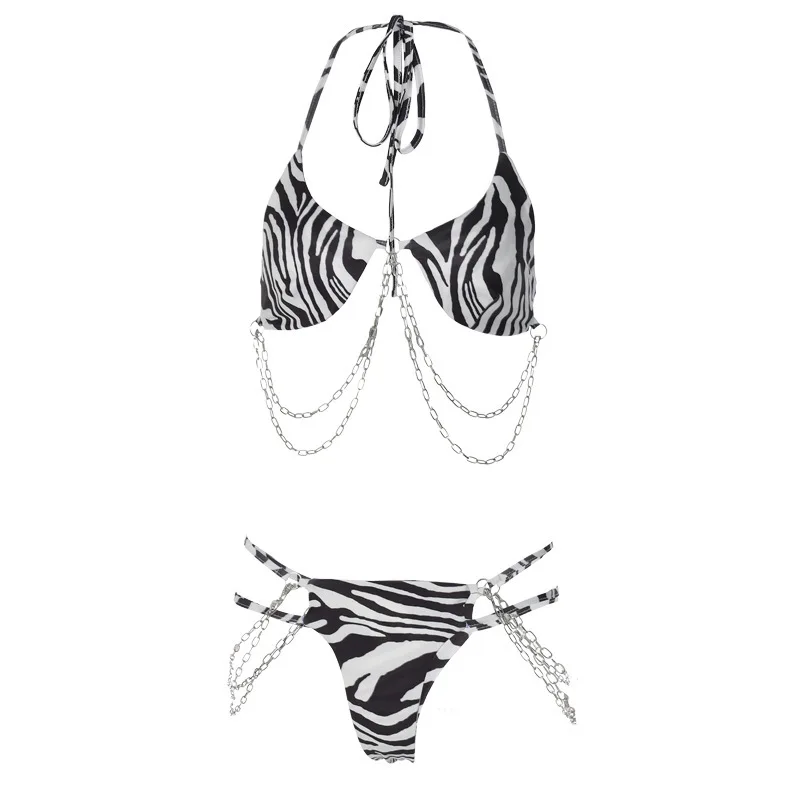 2021 весна, лето, осень и зима, новый пикантный Модный Купальник бикини с принтом и цепочкой, узор зебры леопарда, кроп-топ