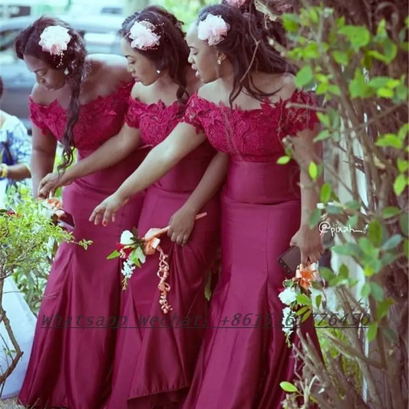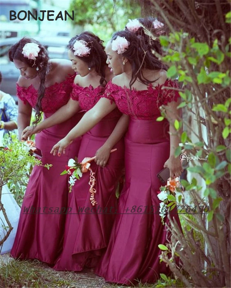 2021 кружевное женское платье с открытыми плечами, Южноафриканское эластичное атласное черное платье на шнуровке для подружек невесты