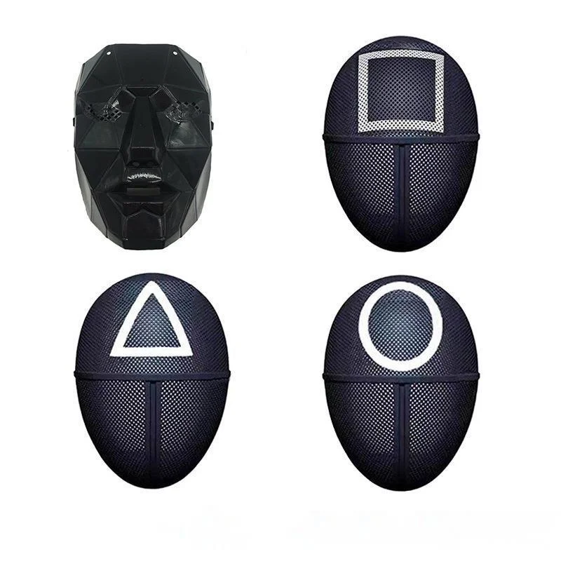 Черная маска из игры кальмар для косплея, Круглый, шестиугольный, треугольный пластиковый шлем, реквизит для костюма для вечеринки
