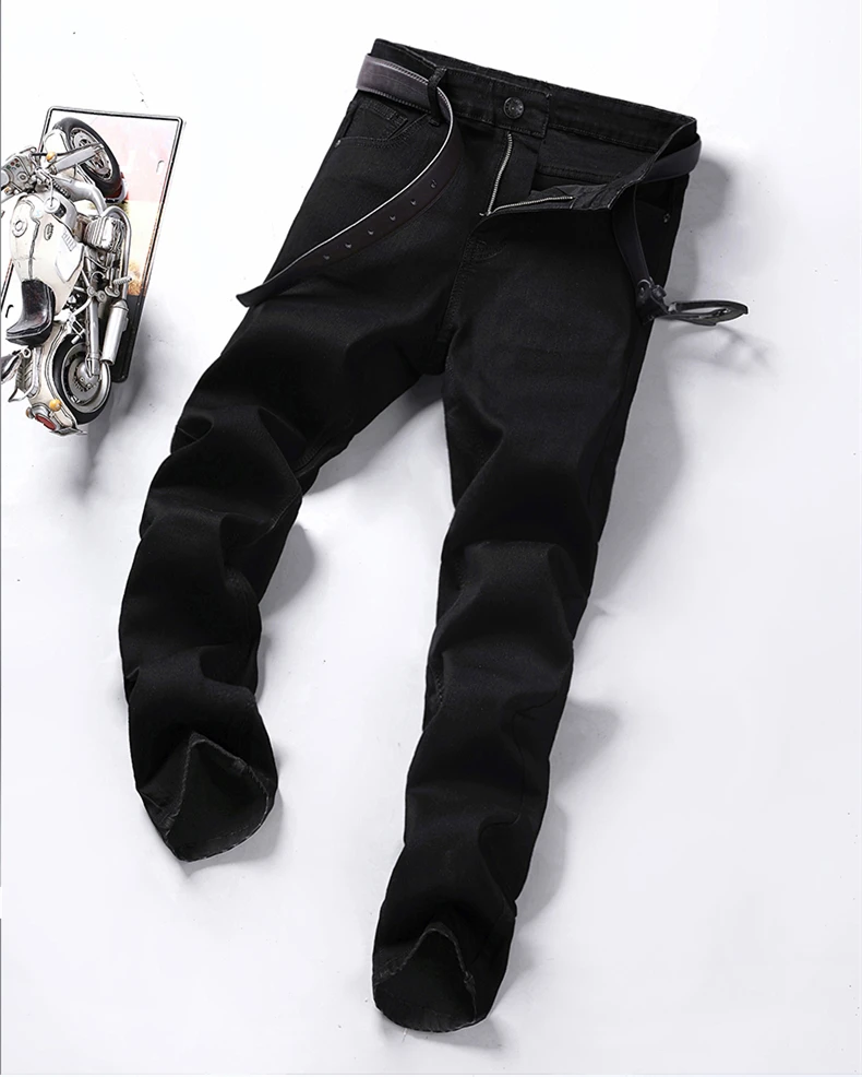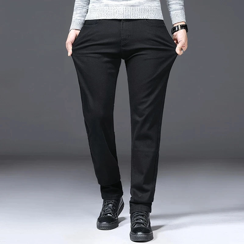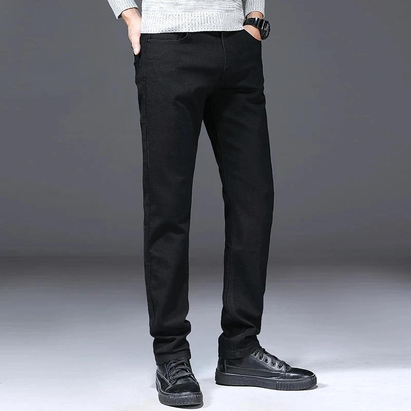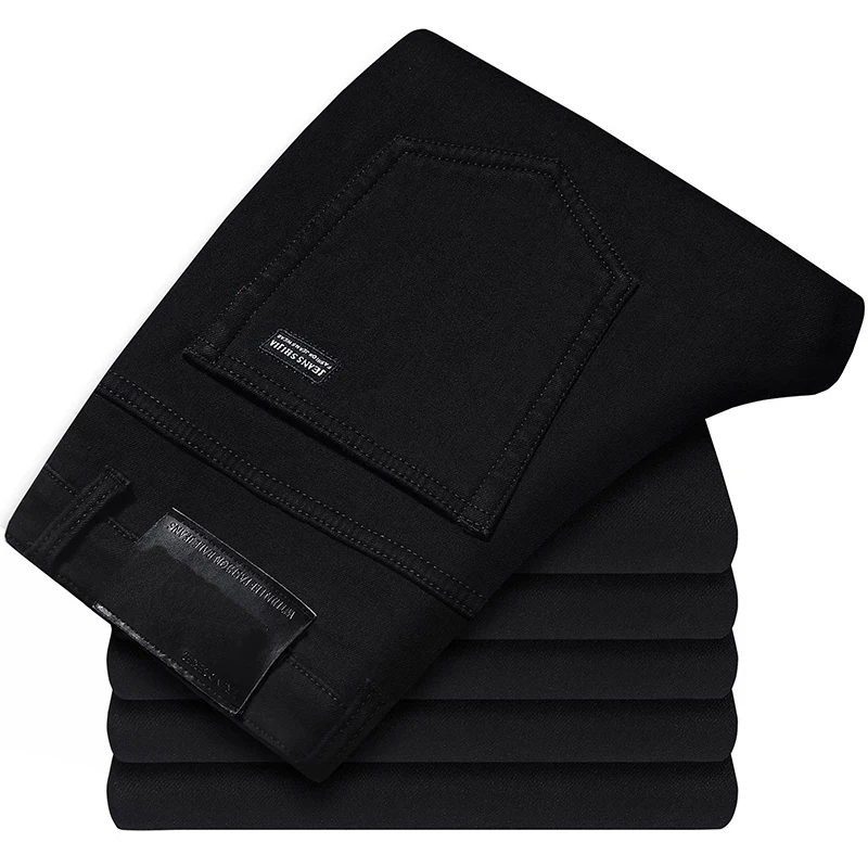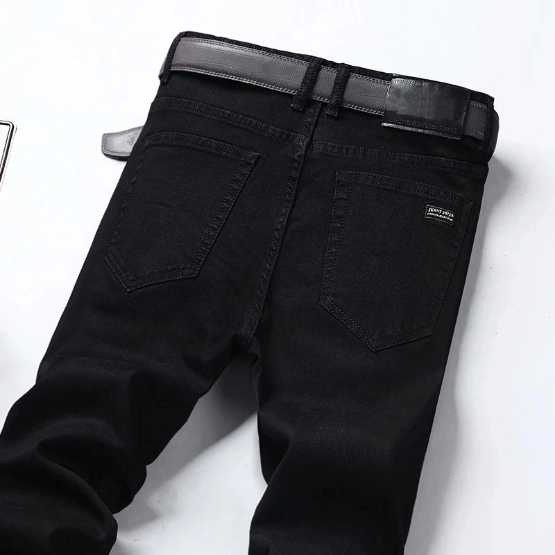Джинсы мужские стрейчевые, модные брюки из денима, классический стиль, деловой стиль, повседневные штаны, чистый черный цвет
