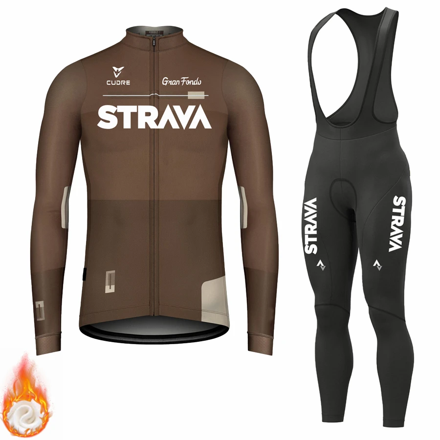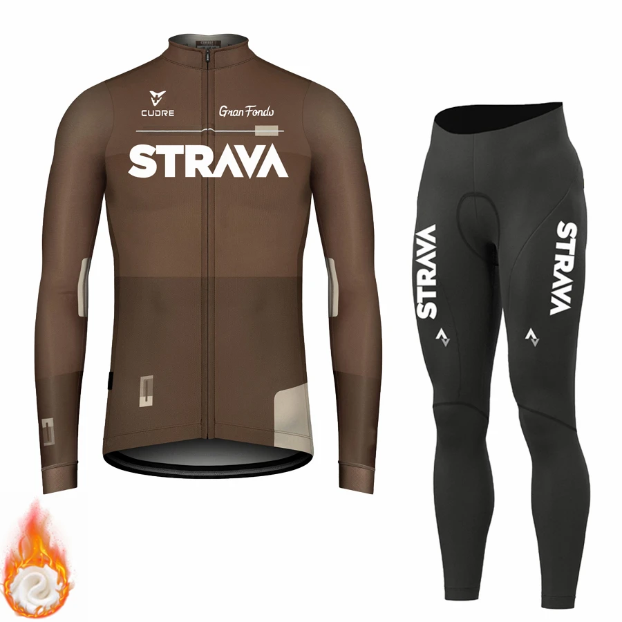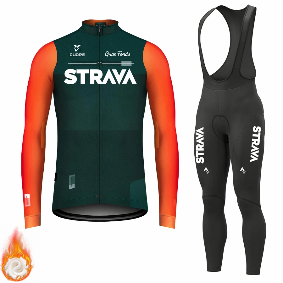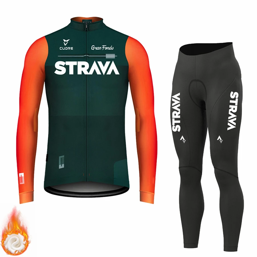 Трикотажный комплект STRAVA мужской с длинным рукавом, одежда для велоспорта, зимняя Термоодежда из флиса для горных велосипедов