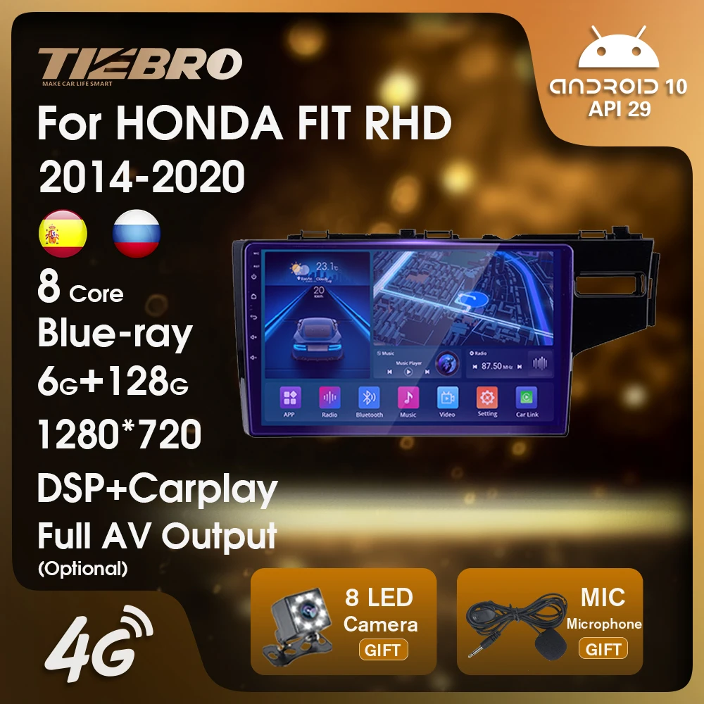 Автомагнитола TIEBRO для HONDA FIT JAZZ RHD 2014-2020 Blu-Ray IPS 2Din Android 10 Автомобильный мультимедийный видео сенсорный экран Bluetooth