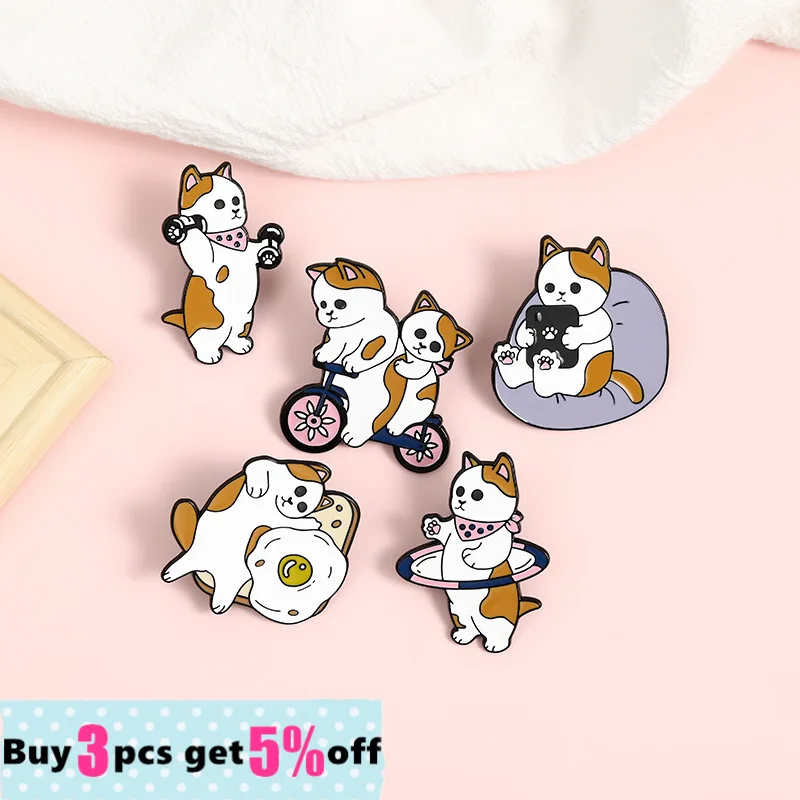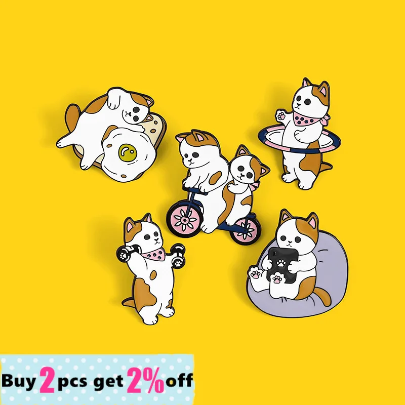 Мультяшный Кот яйцо велосипед гантели хула кольцо Броши забавные ко...