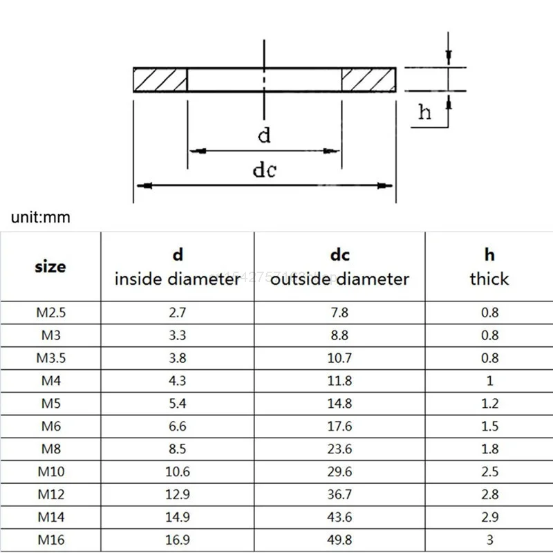 Плоская шайба из нержавеющей стали, 1250100p M2 M2.5 M3 M4 M5 M6 M8...