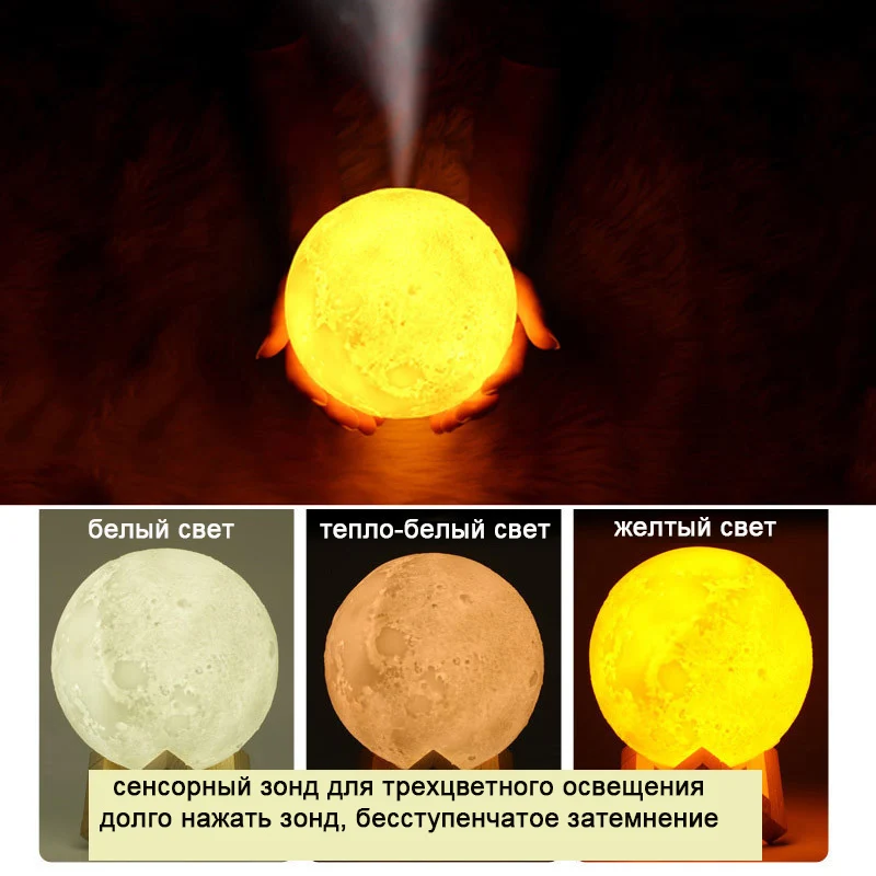 Название продукта: лунный светильник увлажнитель воздухаМатериал ПВХ/ПП + электронные компонентыРазмер изделия: диаметром 15 см