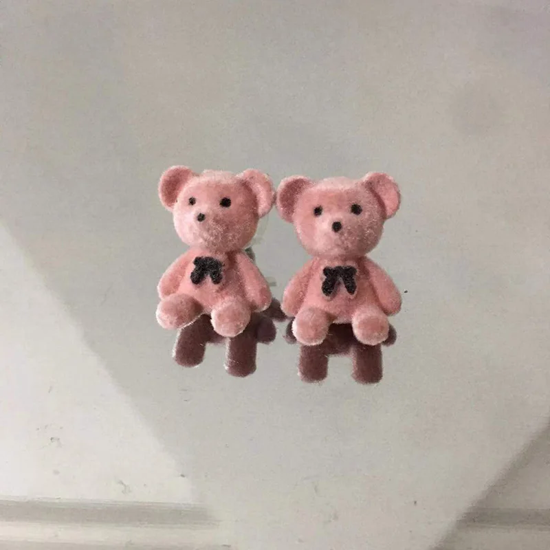 1 пара, маленькие плюшевые серьги в виде медведя Милая кошка, кролик, флокированные серьги с животными для женщин и девочек, серьги-гвоздики, ювелирные изделия, подарки