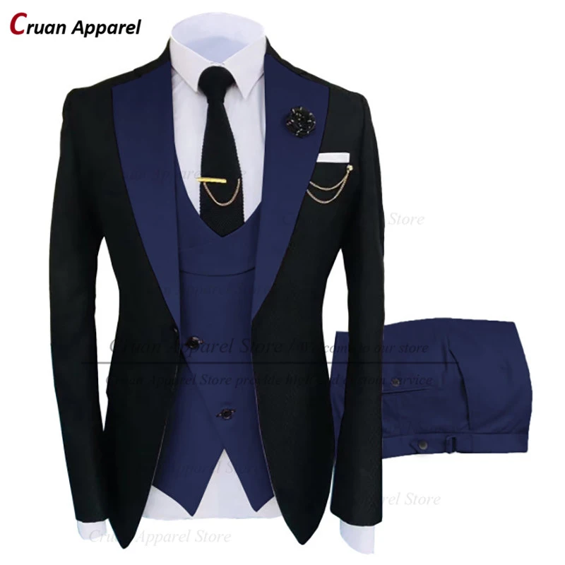 Новейший брендовый черный мужской костюм, комплект из 3 предметов, мужское платье для жениха на свадьбу, смокинг, Модный деловой костюм на выпускной, Официальный пиджак, жилет и брюки