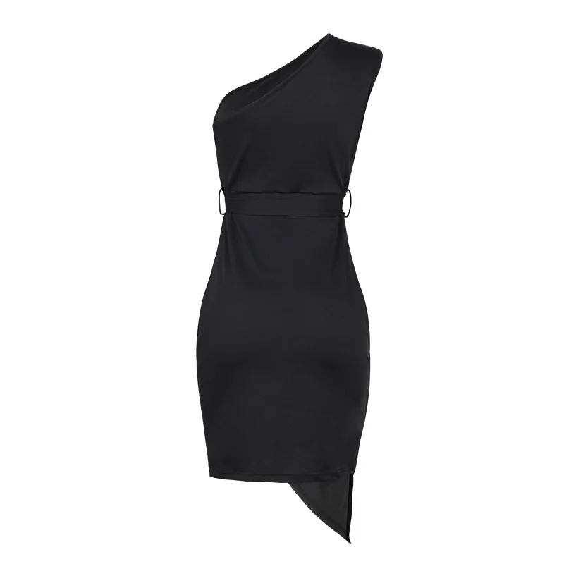 Женское асимметричное платье средней длины, элегантное однотонное праздвечерние чное платье с открытыми плечами и поясом без рукавов в уличном стиле, 2021
