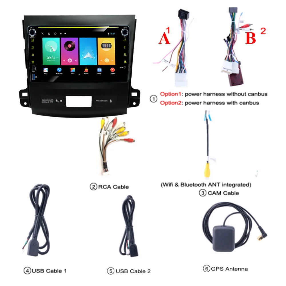 Автомагнитола 2 Din на Android для Mitsubishi Outlander 2005-2011, Peugeot 4007, 2007-2012, автомобильный GPS-навигатор, мультимедийный плеер
