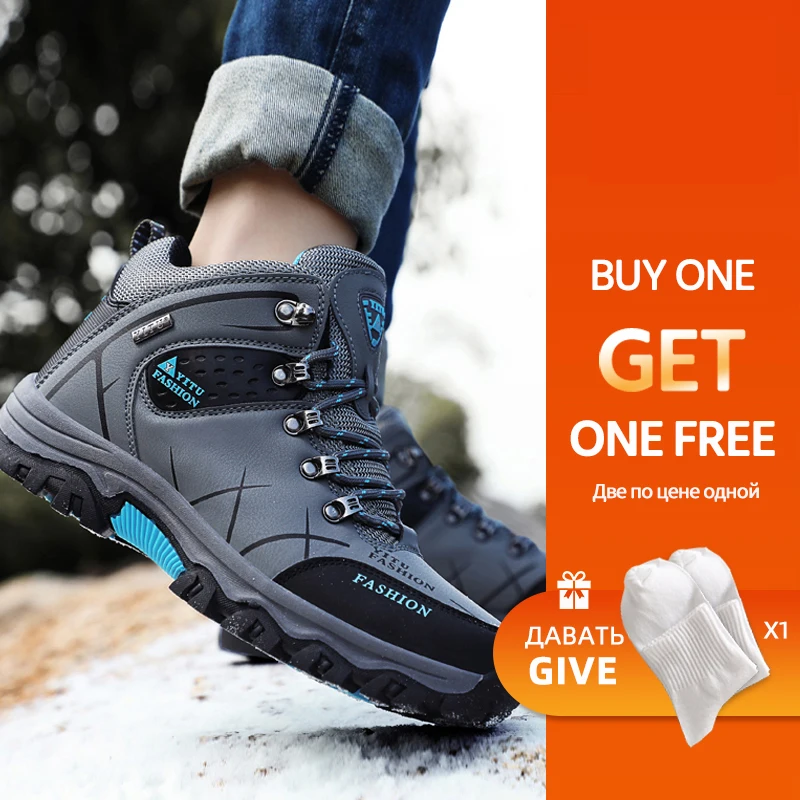 Уличная Мужская походная обувь, мужские зимние спортивные водонепроницаемые Нескользящие кроссовки, теплые мужские ботинки, резиновая износостойкая Рабочая обувь