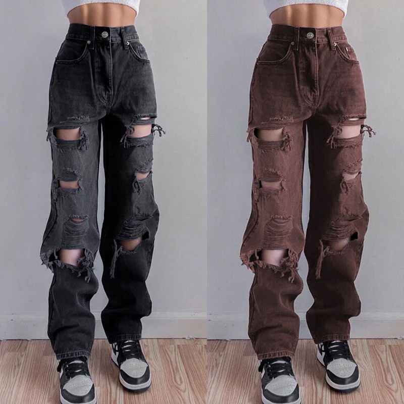 Рваные джинсы с высокой талией, женские модные свободные джинсы в стиле хип-хоп, женские брюки, винтажные женские рваные джинсовые брюки, уличная одежда, новинка 2021