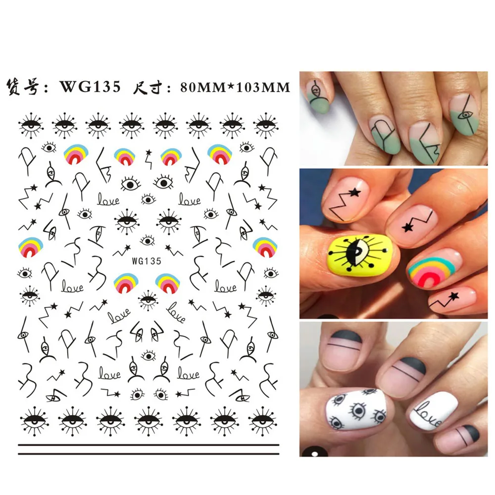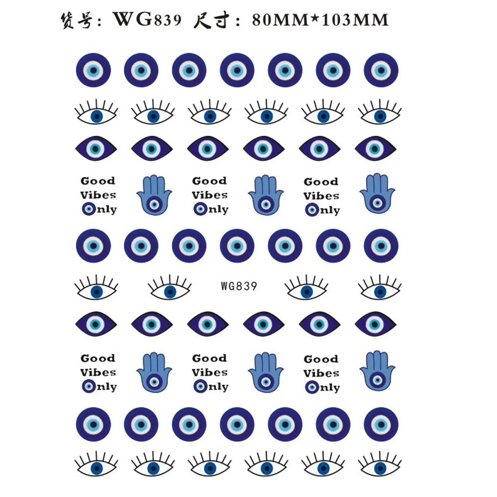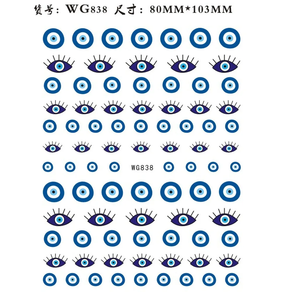 1 лист 3D сглаза дизайн ногтей наклейки абстрактные линии синие татуировки ногтей слайдеры DIY самоклеющиеся ногти декоративные наклейки