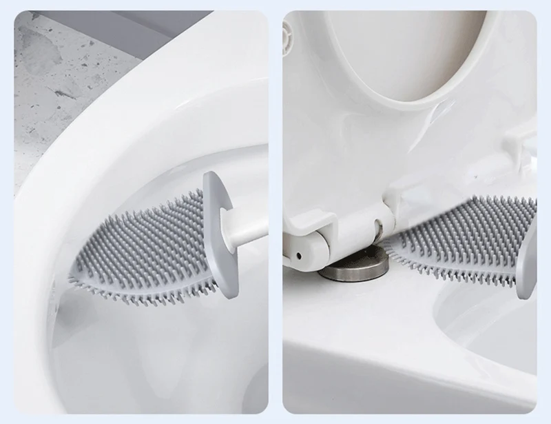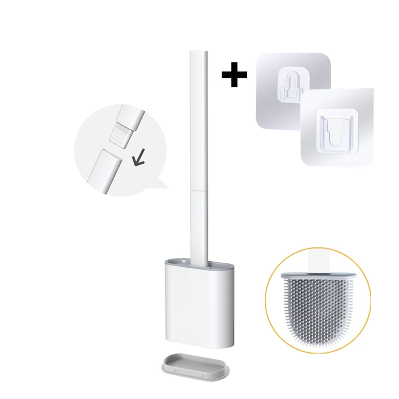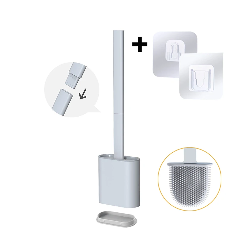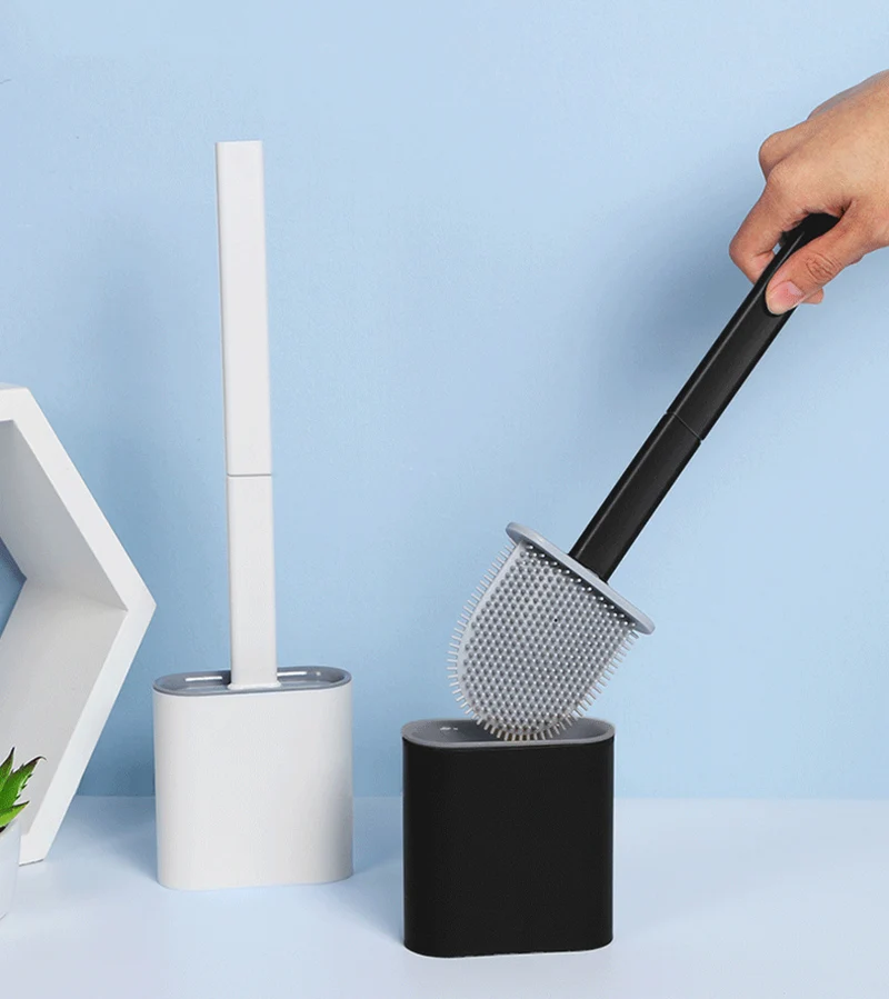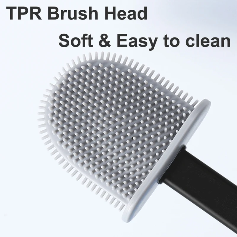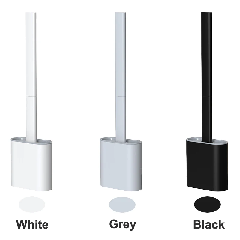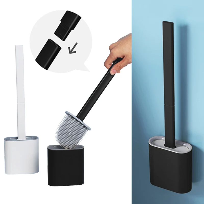 Силиконовая плоская щетка для унитаза с держателем, съемная черная щетка для очистки с длинной ручкой, настенные аксессуары для туалета, ванной комнаты
