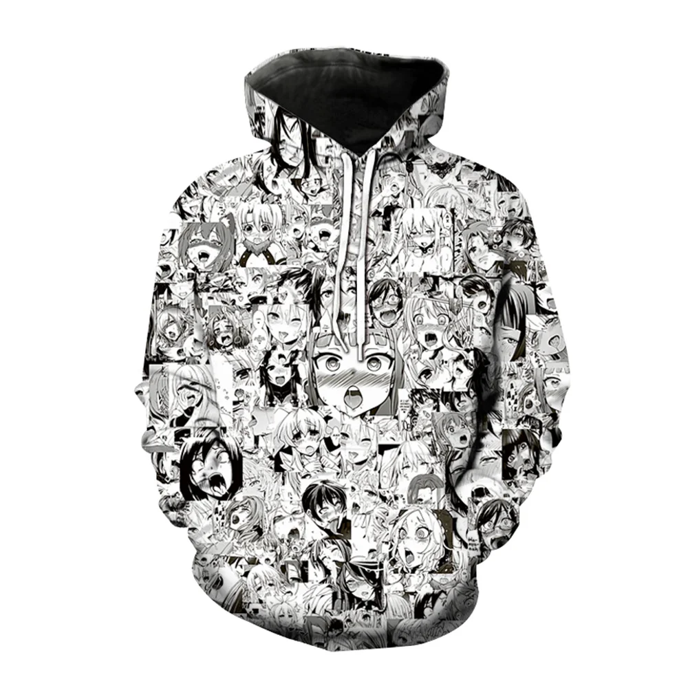 Толстовка Ahegao с аниме 3D принтом для мужчин и женщин, уличная одежда, с круглым вырезом и узором Hentai, худи в стиле хип-хоп, повседневные топы в стиле Харадзюку, сексуальная одежда для девушек
