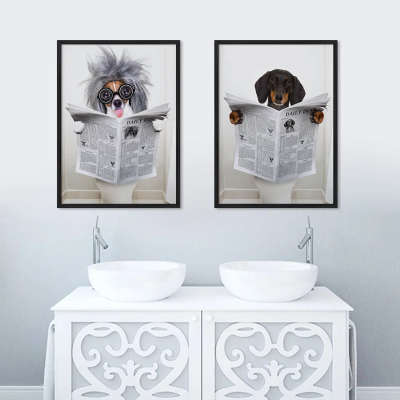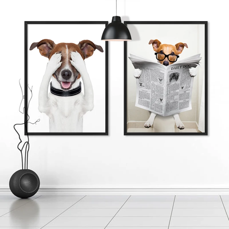 Настенное художественное полотно с изображением животных, собаки, необычное висячее изображение, украшение для туалета дома, картина, каллиграфия
