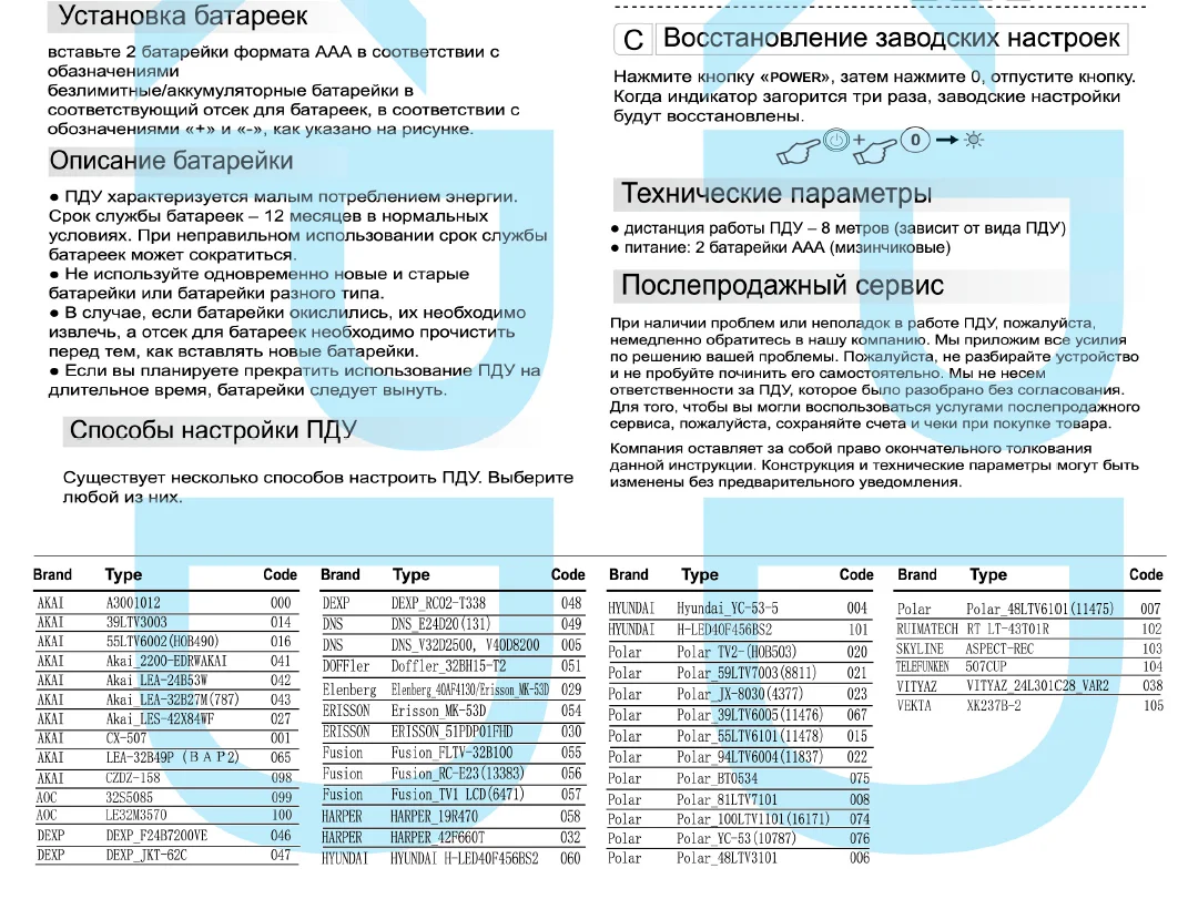 Универсальный пульт подходит для многих брендов и моделей телевизоров!