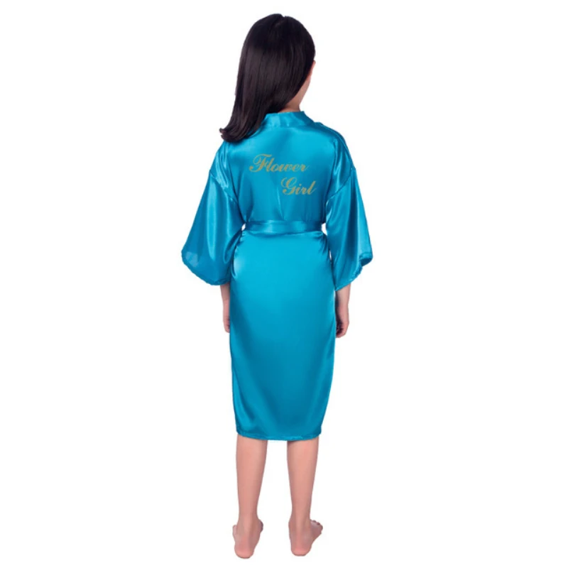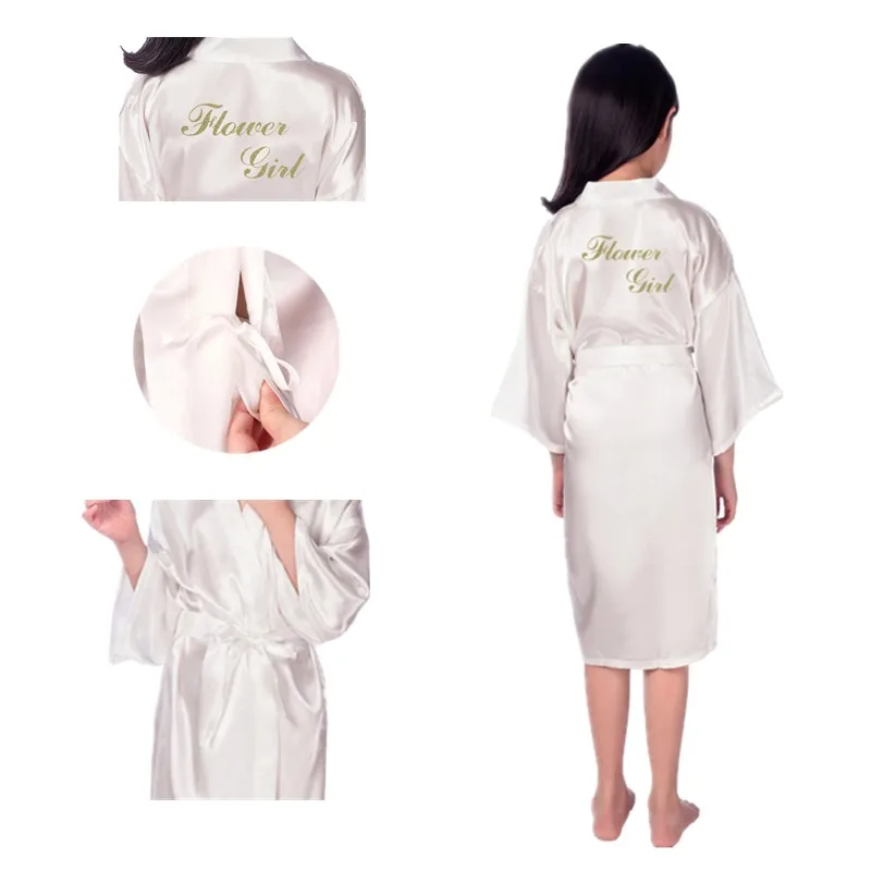 Оптовая продажа, золотистые блестящие халаты с цветами для девочек, шелковые атласные халаты для девочек, для свадьбы, свадебвечерние, Детские Банные халаты L239
