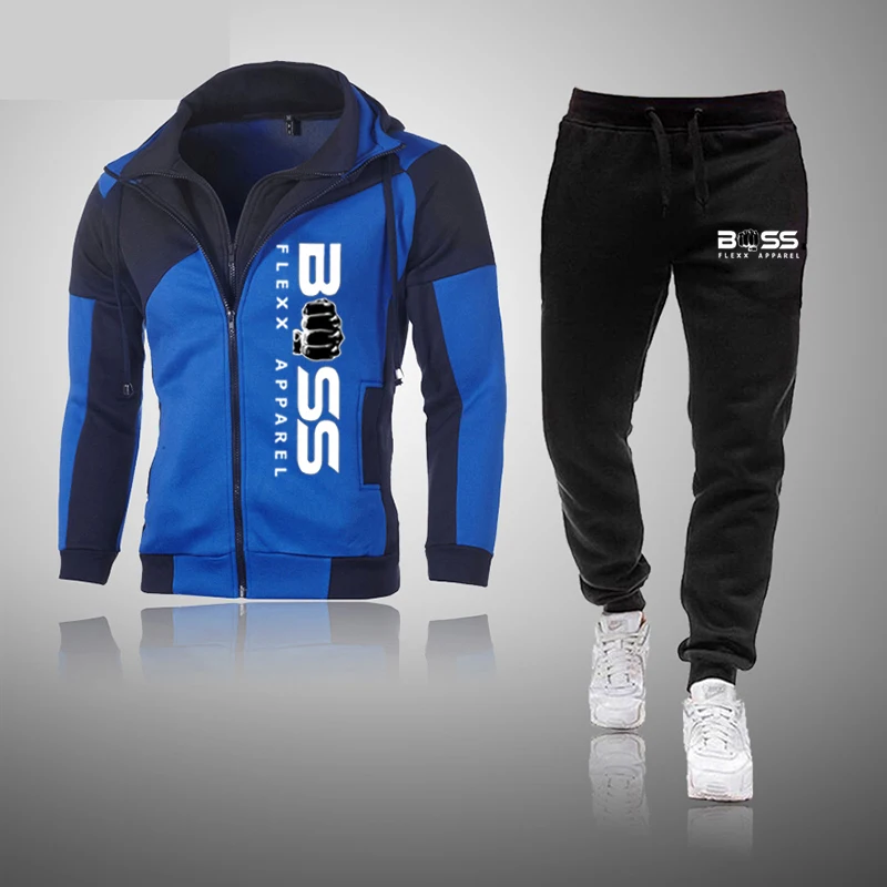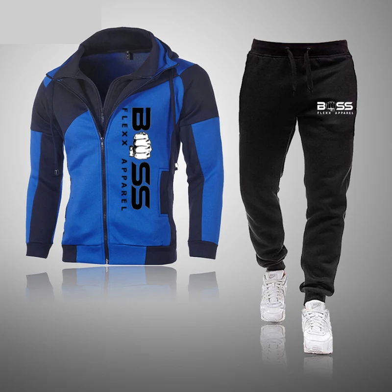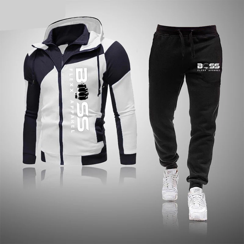 Мужской спортивный костюм на молнии, флисовая толстовка с капюшоном и брюки