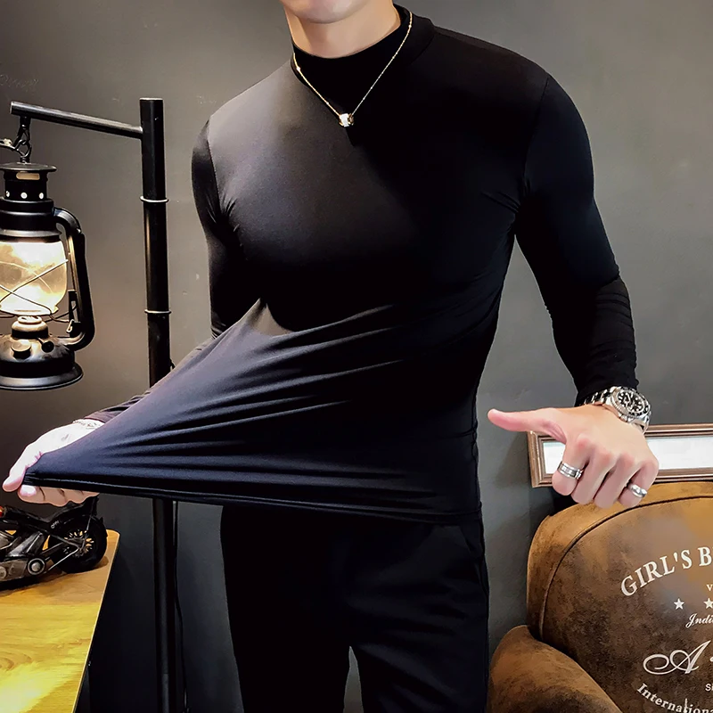 Мужская водолазка с коротким рукавом, облегающая однотонная черная ...