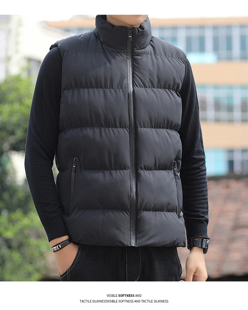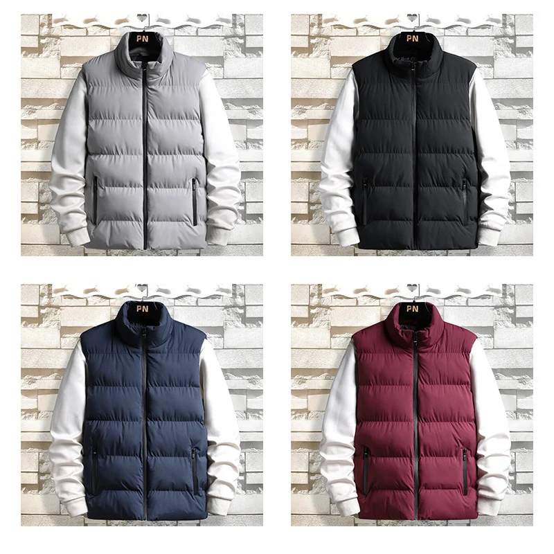 Мужской осенне-зимний жилет 2021, однотонный жилет с воротником-стойкой, повседневная мужская куртка без рукавов, хлопковые пальто, размеры