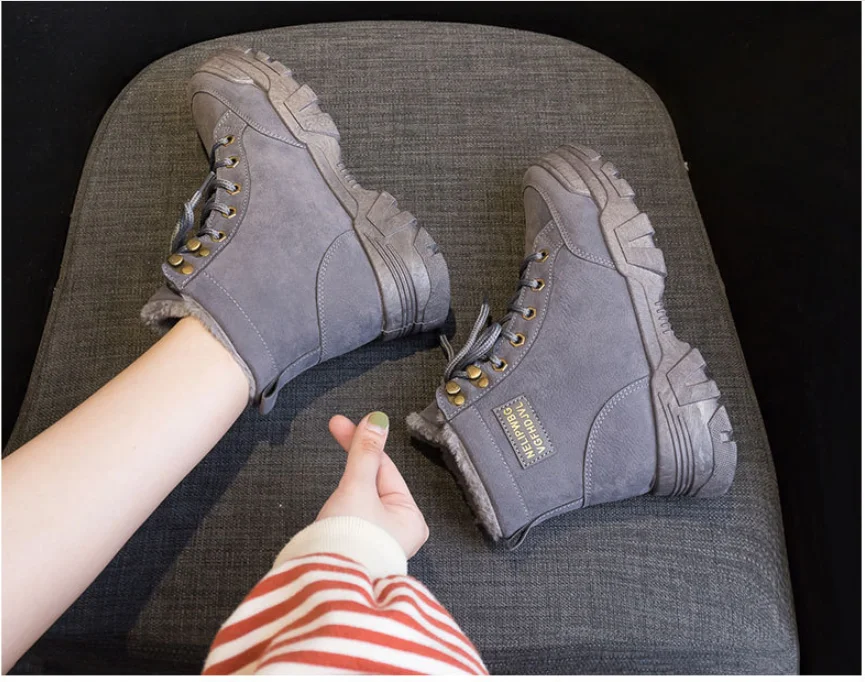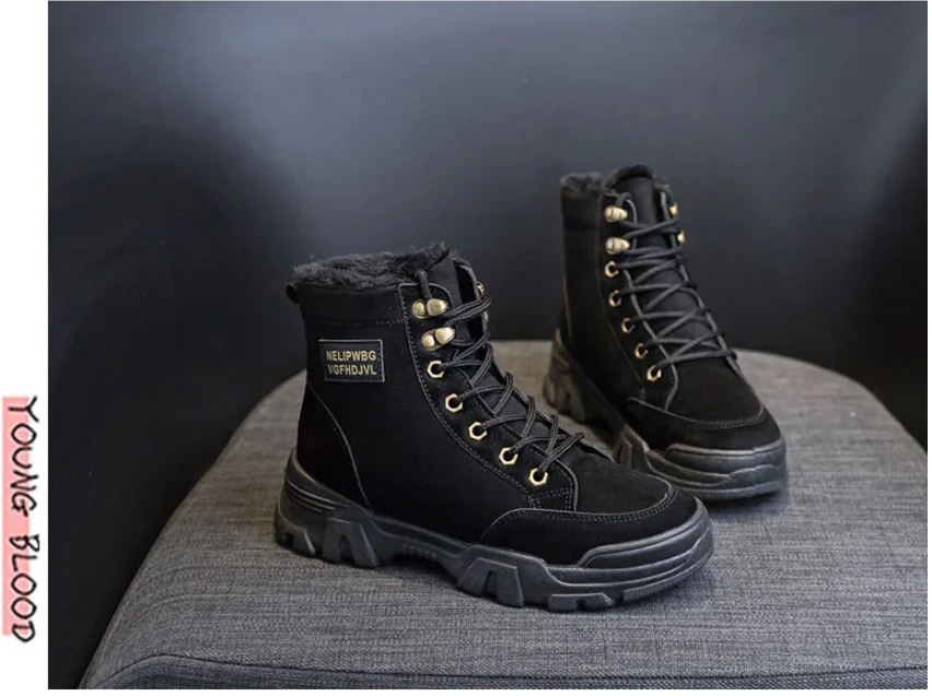 Зима 2021, новые зимние ботинки, женские короткие ботинки, теплая хлопковая обувь, ботинки Martin, Женская бархатная женская обувь, повседневная обувь