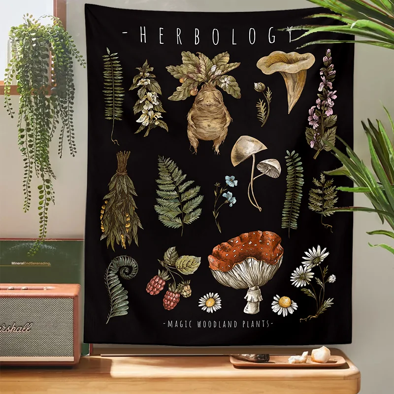 Винтажный гобелен с волшебными грибами, настенный подвесной гобелен с ведьмой и руками, корень мандры, грибы, растения, домашний декор, декоративное настенное украшение