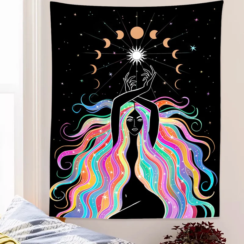 Индийская Луна фаза девушка МАНДАЛА ГОБЕЛЕН Настенный декор в стиле бохо макраме хиппи ведро гобелен настенное украшение ткань