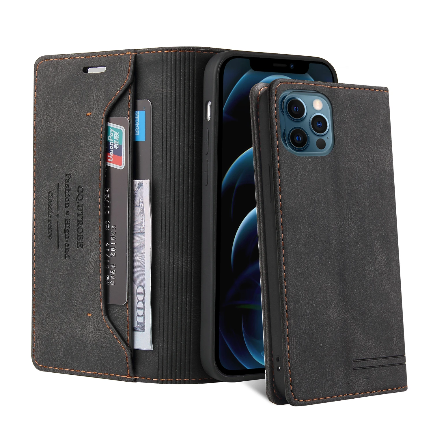 Кожаный чехол с защитой от затекания для iPhone 13, 12 Mini, 11 Pro Max, XS Max, XR, X, SE2020, 8, 7, 6, 6S Plus, деловой флип-кошелек, чехол с отделением для карт