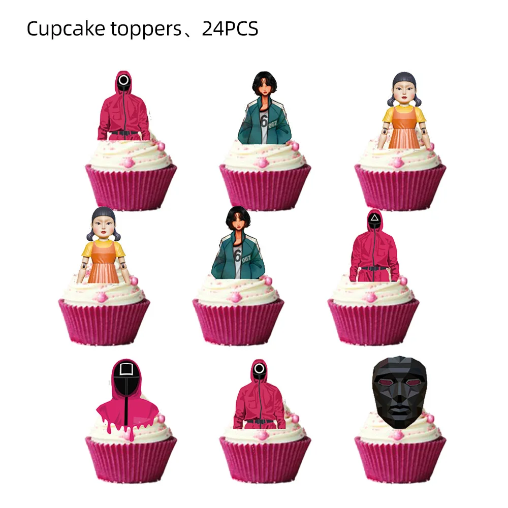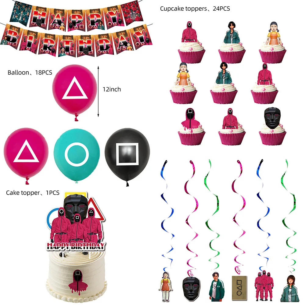 Игра кальмар, украшения для дня рождения, столовая посуда, конфетна...