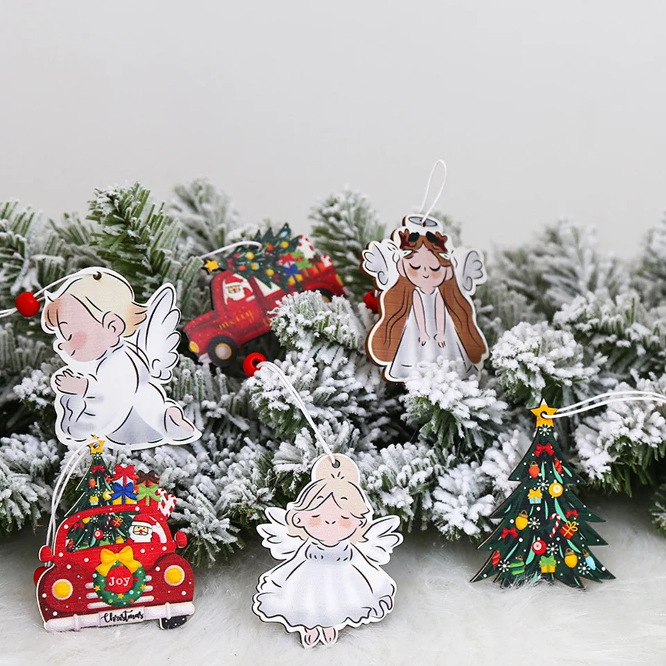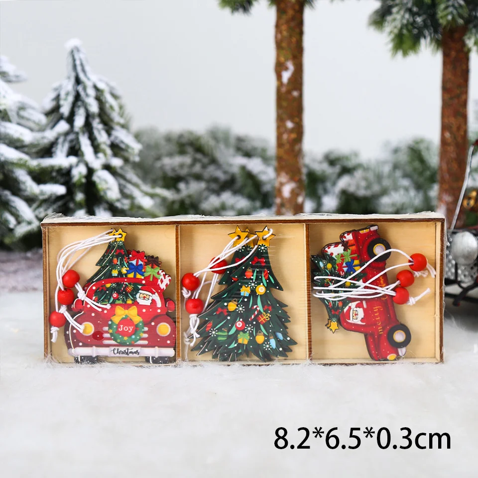 9 шт. рождественские деревянные украшения деревянный автомобиль Санта Клаус Дерево Висячие украшения для рождества дома вечерние украшения подарки для детей