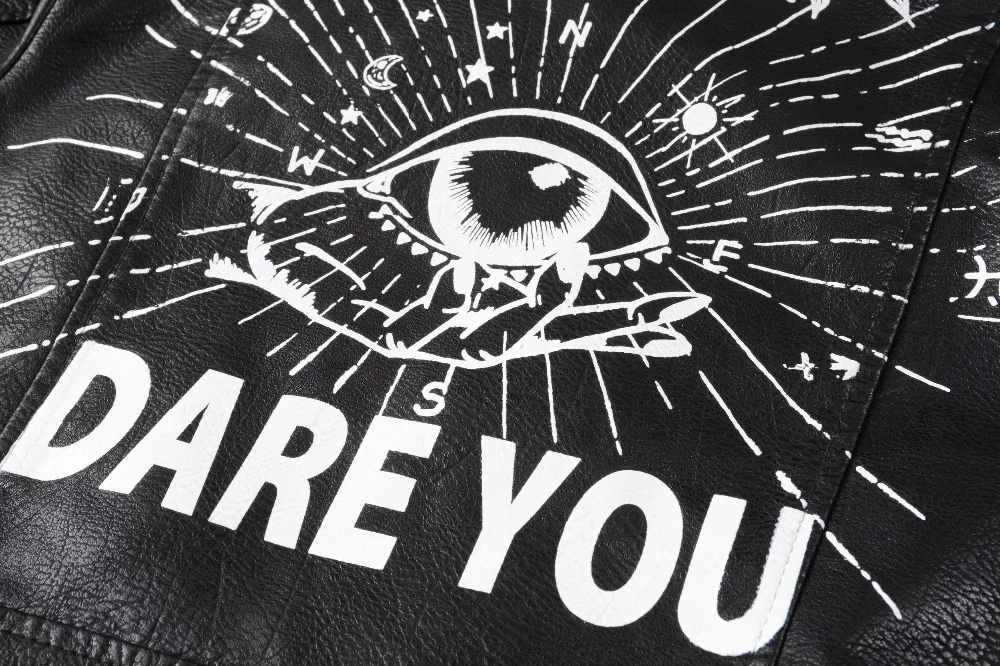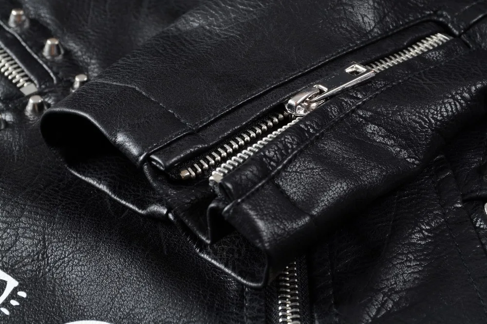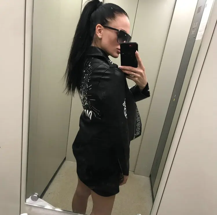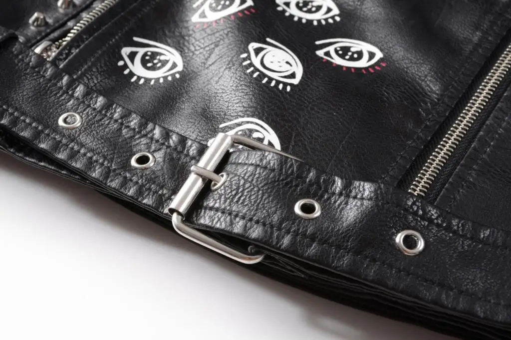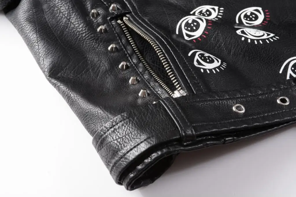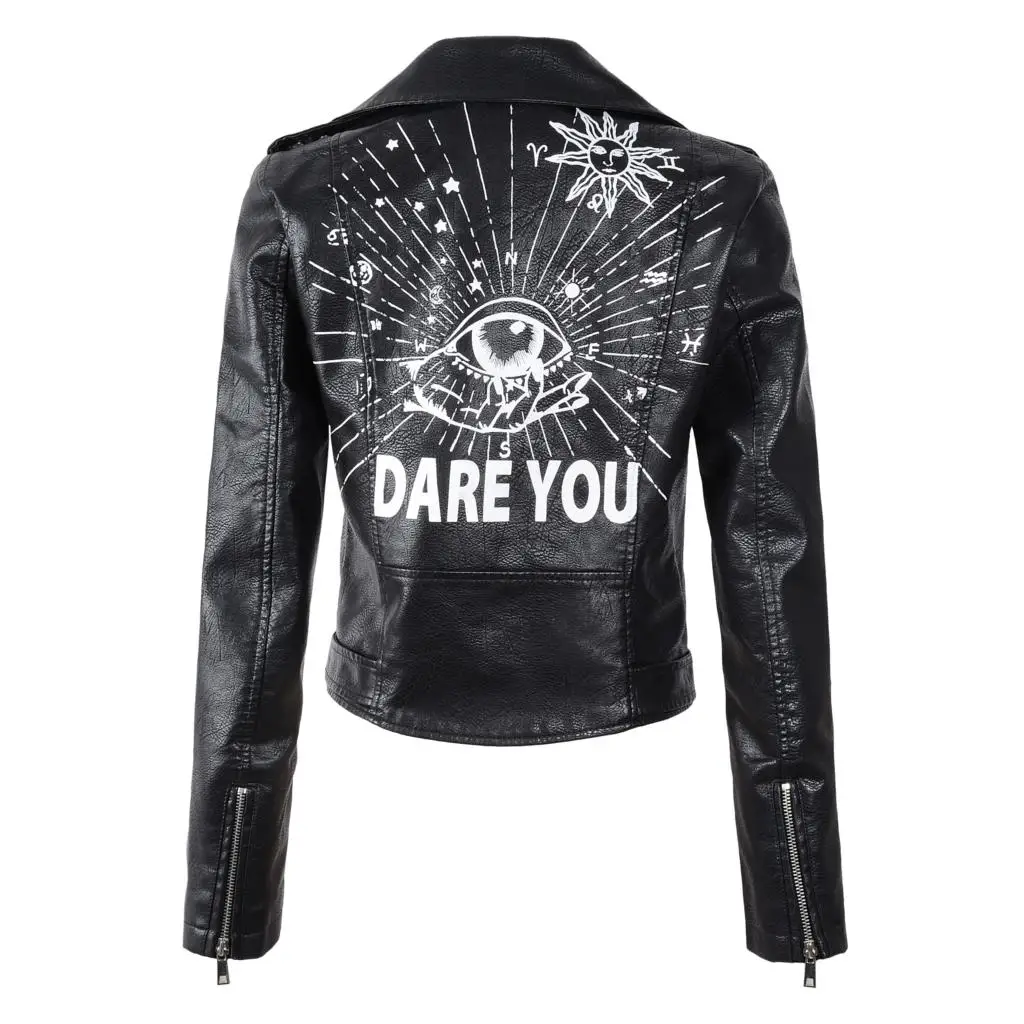 Женская осенне-зимняя куртка из искусственной кожи с 3D-принтом и заклепками