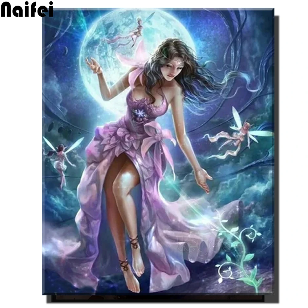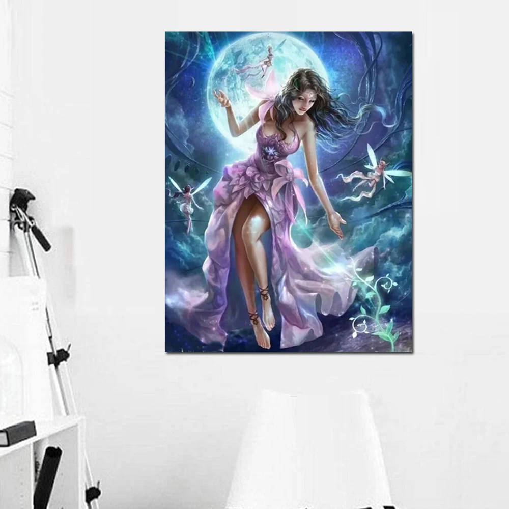 Полностью квадратная/круглая дрель 5D DIY Алмазная картина фантазия цветок луна фея мозаика вышивка крестиком 3D домашний Декор подарок