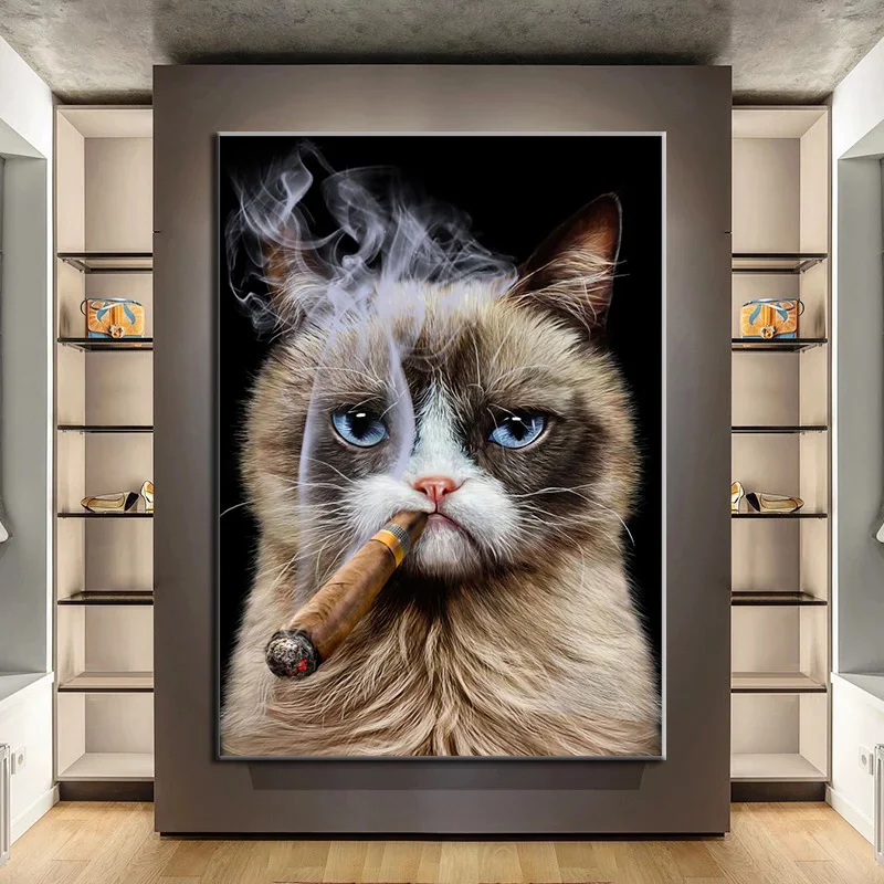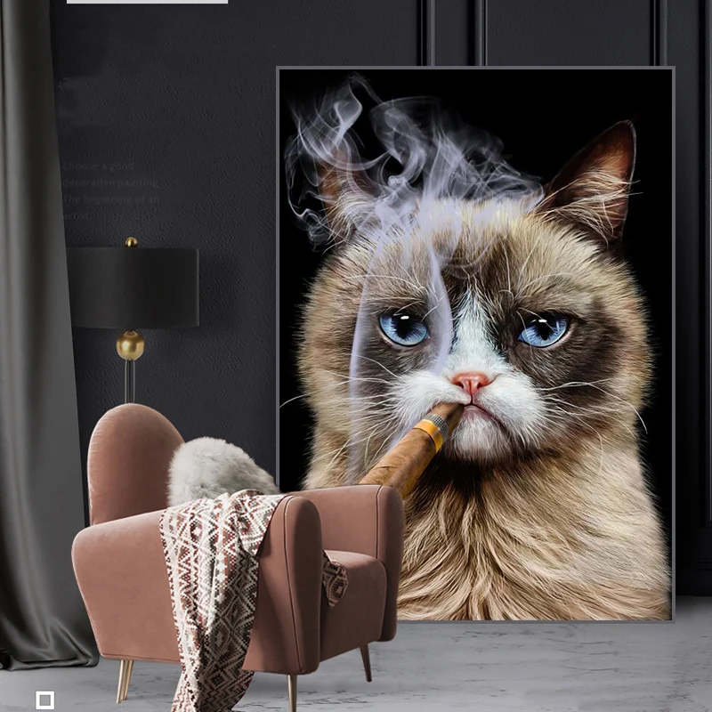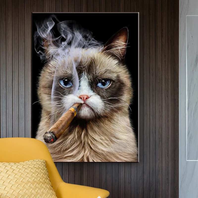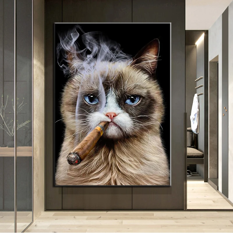 Абстрактная картина на стену с изображением кошки курительной сигары плакаты и принты забавные животные Картина на холсте для гостиной домашний декор живопись
