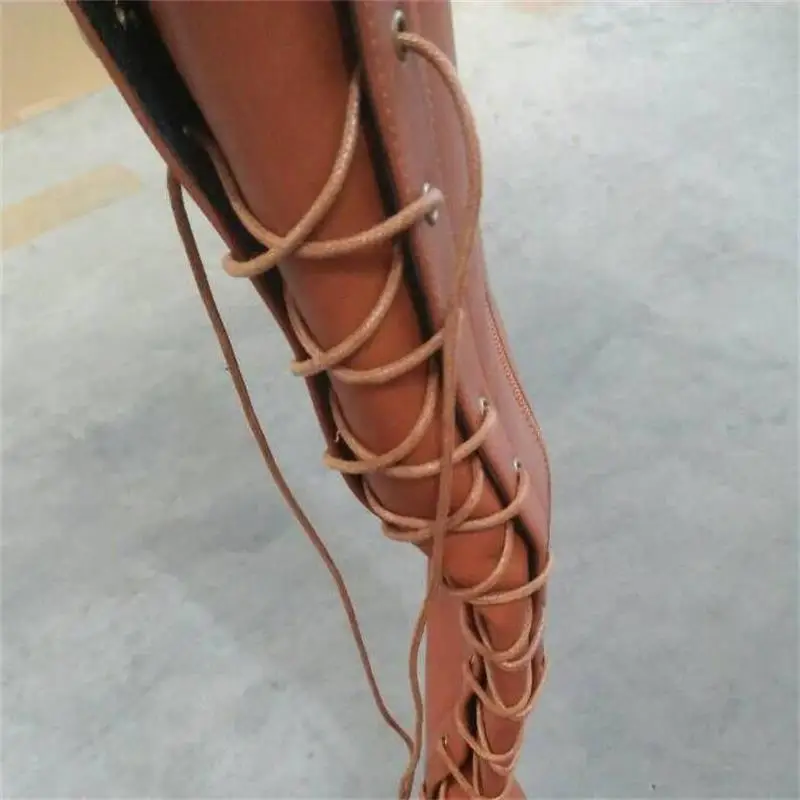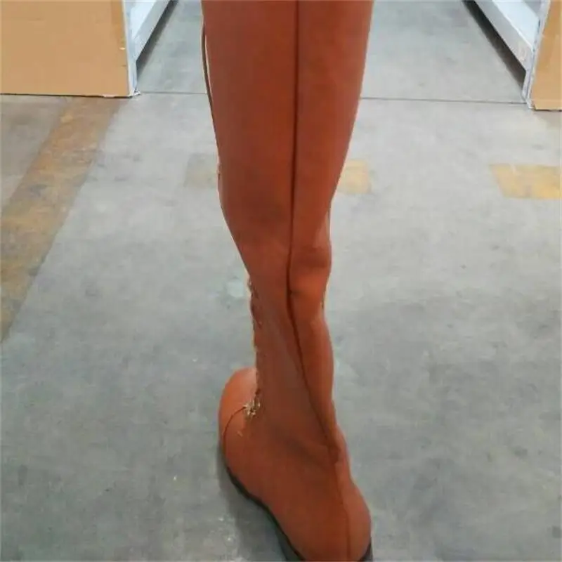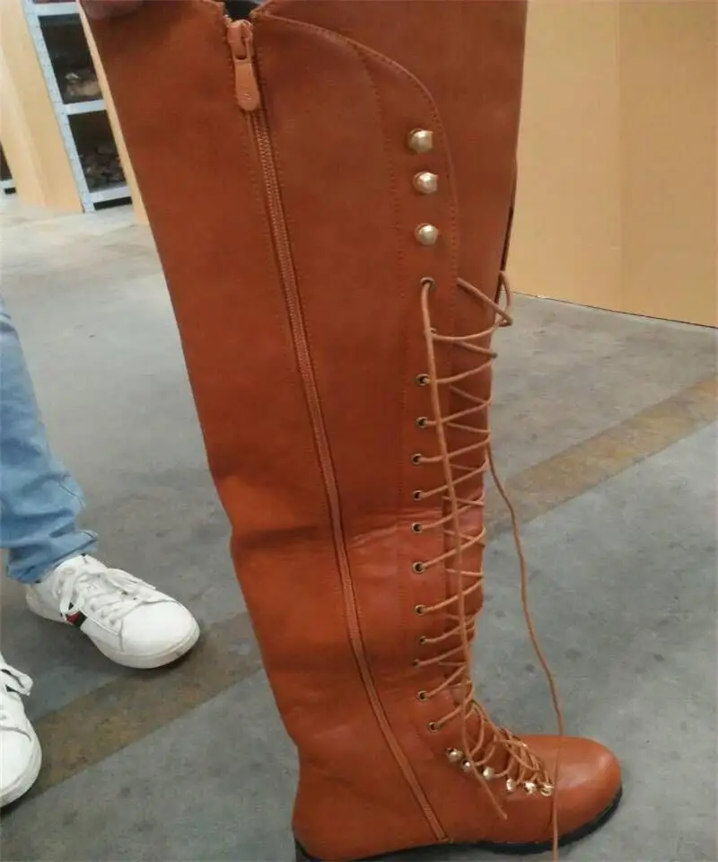Женские сапоги 2021 осень и зима в европейском и американском стиле с металлическим украшением однотонные Сапоги выше колена на шнуровке