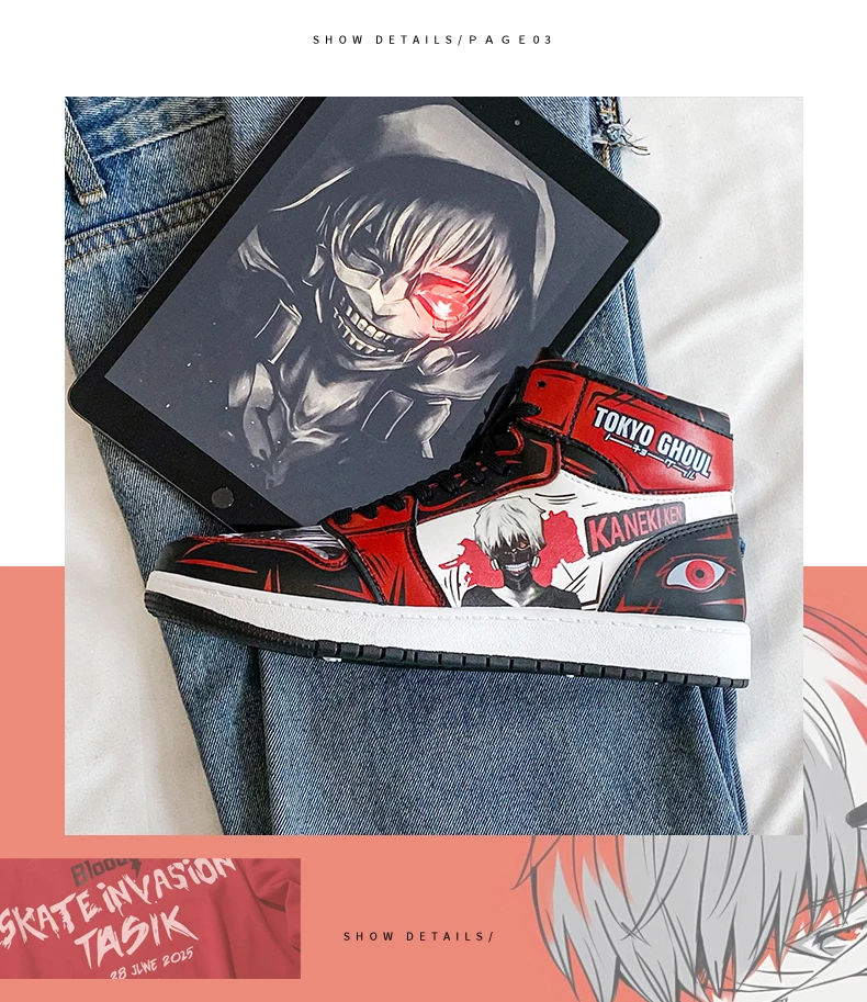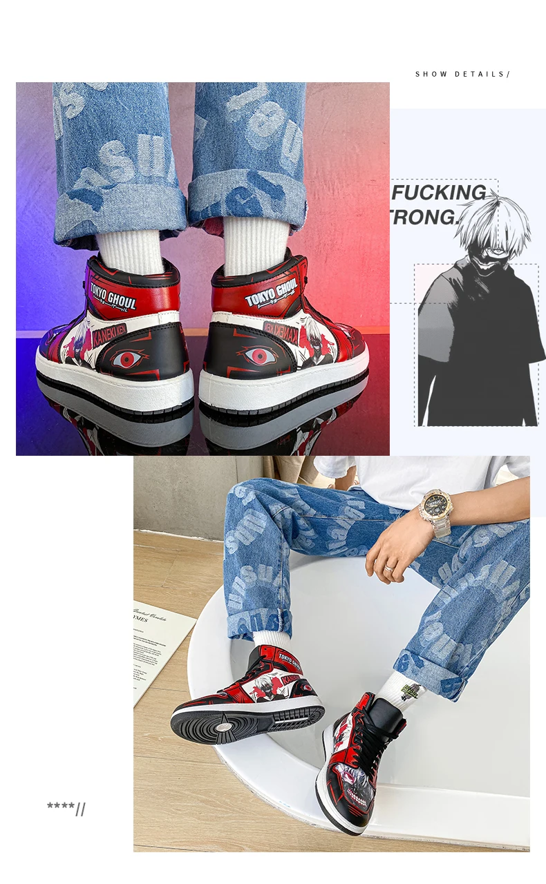 Кроссовки Kaneki Ken из аниме Токийский Гуль, высокие, Вулканизированная подошва, спортивная обувь для бега, для женщин и мужчин, Прямая поставка