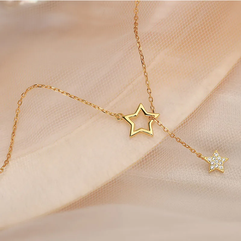 VOQ серебристый циркониевый ожерелье со звездами для женщин, полый ...