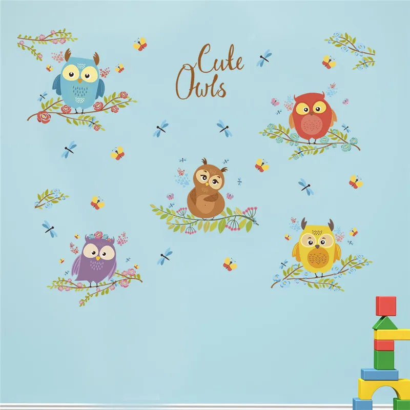 Милые наклейки на стену в виде семьи совы, украшение для дома, детская комната, спальня, животные, совы, роспись, искусство сделай сам, искусство из ПВХ